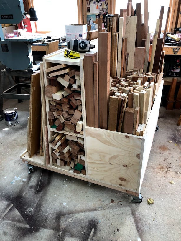 In my quest to stop this travesty of mahogany burning hooligans, I began to go past the mill daily (sometimes twice a day). But I found myself quickly running out of space: so I built myself a wood storage cart. Which was great to contend with the wood I had......but it didn't anticipate the incoming pieces.